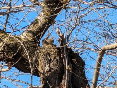 なんと、校門近くの桜の木の上で