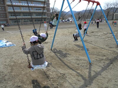 休み時間に外で遊んでいます。