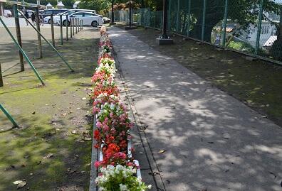 校庭の「さくら歩道」を飾るベゴニアの花たちです。