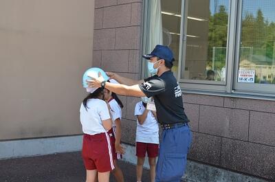 ヘルメットを着用し、気持ちをつくって臨んだ地震体験でしたが、