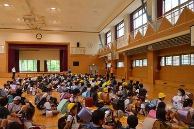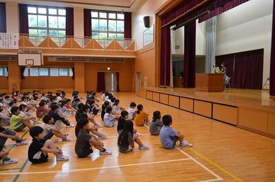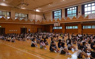 終業式では、1学期間の成長や夏休みの安全な過ごし方を確認しました。