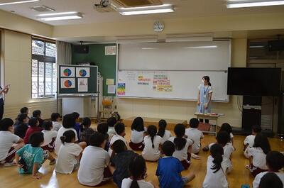4年生が栄養士さんからおやつの摂り方について学びました。
