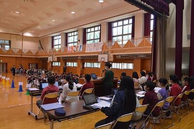 3年生以上が参加して、児童総会を開きました。
