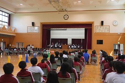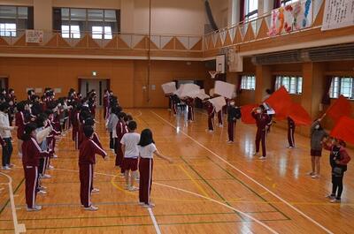 体育館では、高学年が応援の練習に取り組んでいました。