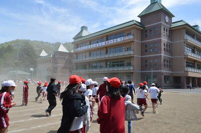 校庭では、徒競走の練習をしたり、団体競技の練習をしたりと元気な姿が見られました。