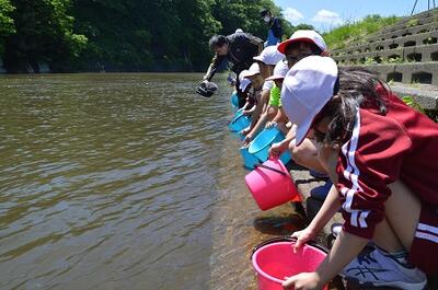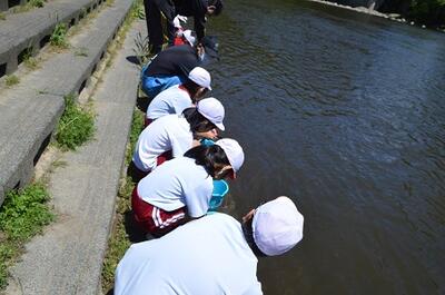 4年生が鮎の放流を行ってきました。