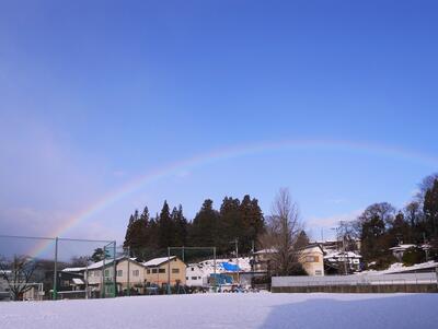校庭に虹が