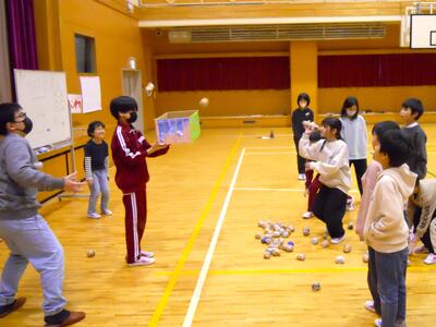 息が合わないと大変な「ボール運び」。